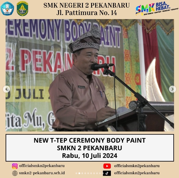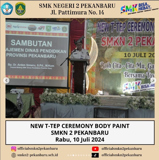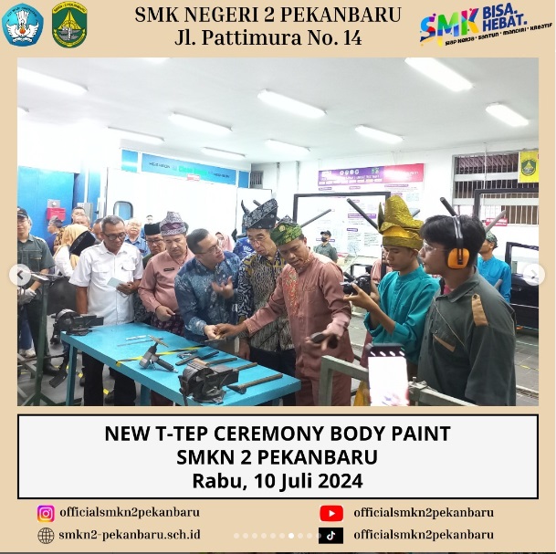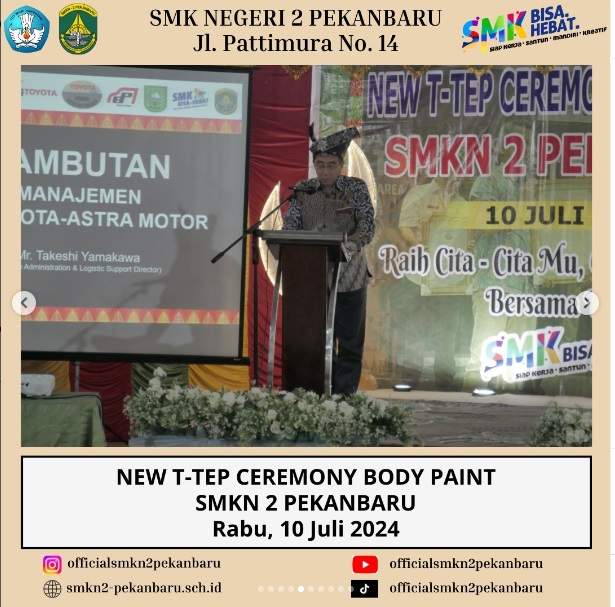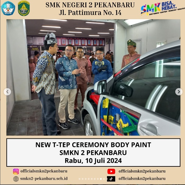 New T-TEP Ceremony Body Paint SMKN 2 Pekanbaru merupakan Acara Peresmian oleh Manajemen Toyota-Astra Motor, dihadiri oleh Mr. Takeshi Yamakawa (Finance Administration & Logistic Support Director), Bapak H.Peri Daswandi, S.Pd., M.Pd (Kepala SMKN 2 Pekanbaru) dan Bapak Dr. Arden Simeru, S.Pd., M.Kom (Kabid SMK) serta para jajaran Tim Toyota.